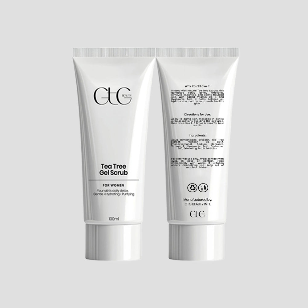Infused with natural Tea Tree Extract, this gel-based scrub gently exfoliates, removes impurities, and calms troubled skin. With added Vitamin B3, E, and Hyaluronic Acid, it helps balance oil, hydrate skin, and reveal a fresh, healthy glow.